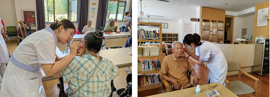 本次活动中的护理服务是为老年人埋耳豆。通过耳穴贴压调理身体各个器官的功能,增强老人们的健康,同时让老人感受到了中医的神奇之处。在贴耳豆的过程中让我们印象最深的是一位高知奶奶,滔滔不绝地诉说她对中医的信赖与敬佩。