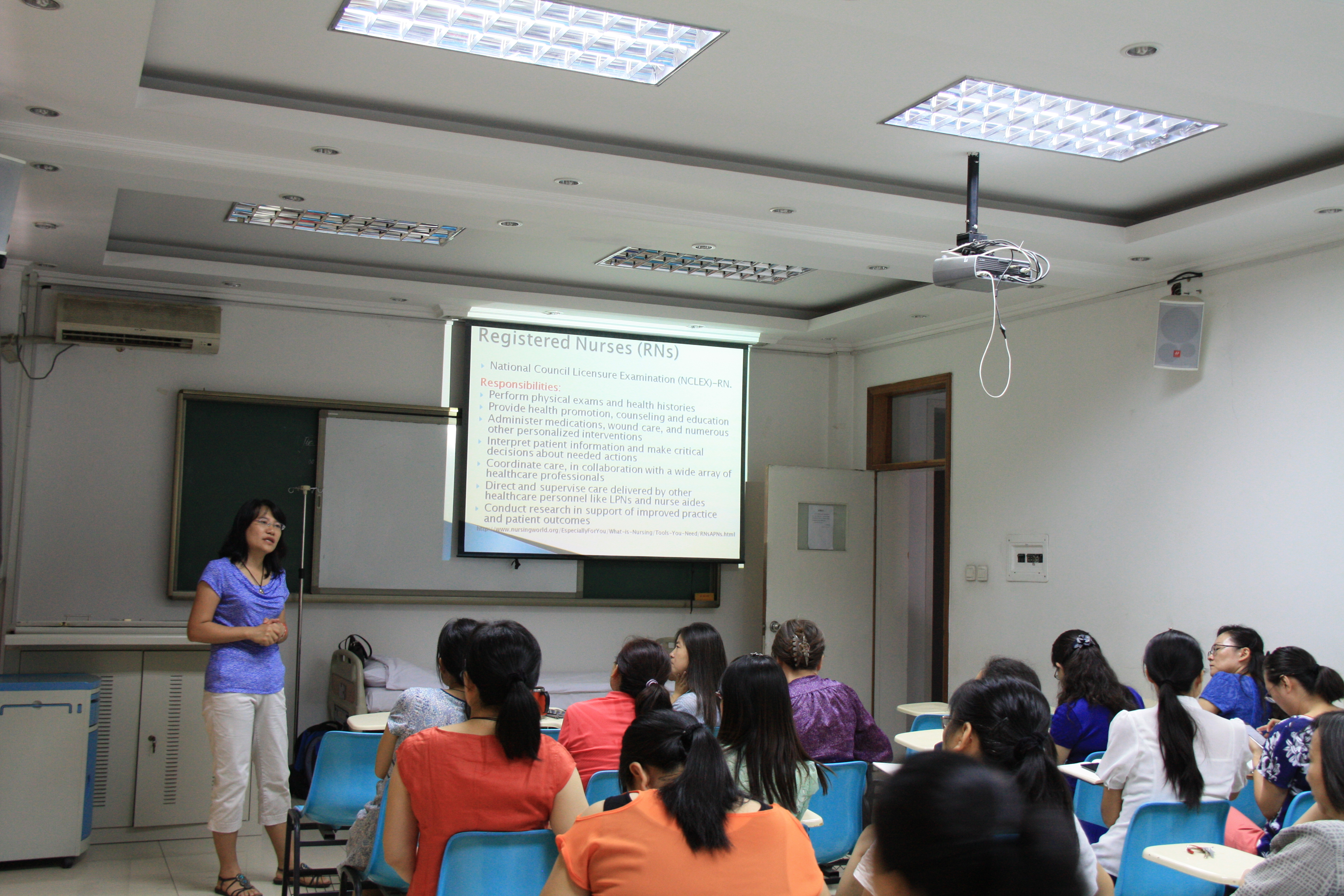 2014年8月28日上午,美国康狄涅格州立大学36365线路检测登录入口丛笑梅教授关于“美国护理教育与研究”的讲座在我校36365线路检测登录入口示教室举行,36365线路检测登录入口全体教师参加了此次讲座。