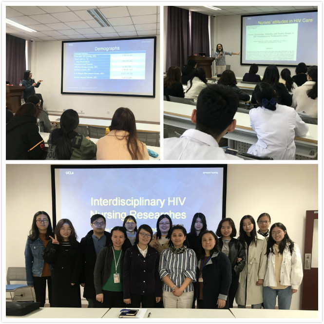 陈维悌副教授此次来访,先后为学院教师、研究生进行了题为《Tobacco, Alcohol, Drug use, and Intimate Partner Violence among MSM Living with HIV & Related Nursing Ethics》及《Interdisciplinary HIV Nursing Researches》的两场讲座,对艾滋病中男男同性恋者的伴侣暴力与药物滥用的关系进行了探讨,并介绍了她在艾滋病跨学科研究中的进展与体会,提出了艾滋病研究的未来方向,如艾滋病的家庭照护、艾滋病中的伴侣暴力问题等。陈维悌副教授的讲解深入浅出,与师生们积极互动。在讲座后的提问环节,陈维悌副教授对师生们提出的问题进行了精彩的回答,现场气氛热烈。通过讲座,学院师生开拓了视野,增长了学术见识,拓展了科研思路,为以后师生们进一步开展科研起到了促进作用;陈维悌副教授还结合自己的科研经历,跟大家分享了自己职业成功的经验,并给研究生们提出了建设性的意见。