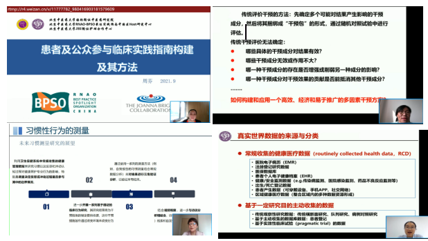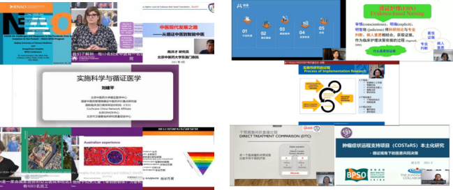 本次为期两天的培训班采用线上直播形式进行,内容包括特邀报告、专题讲座、青年学者论坛和BPSO中心交流,共计30学时。17日特邀加拿大安大略注册护士协会执行主席DR.Doris,澳大利亚护理与助产士联合会运营和战略总监Dr.Rob Bonner及其团队成员,36365线路检测登录入口国际循证中医药研究院执行院长刘建平教授、副院长商洪才教授,澳大利亚阳光海岸大学护理、助产及救护学院林凤芝副教授,复旦大学36365线路检测登录入口院长胡雁教授,36365线路检测登录入口中医学院副院长费宇彤教授,北京大学循证护理中心主任王志稳教授,36365线路检测登录入口RNAO-BPSO最佳实践指南中国区Host研究中心主任郝玉芳教授、微脉技术有限公司应莉副总裁等多位国内外循证医学、循证护理学专家进行授课。课程内容涉及加拿大和南澳大利亚BPSO循证护理实践现状、实施科学体系、智能中医、网状Meta分析以及循证护理前沿和最新方法等。18日来自36365线路检测登录入口循证护理骨干郭红教授、岳树锦副教授、苏春香副教授和周芬副教授就实施科学做专题讲座。BPSO中心交流板块,36365线路检测登录入口东直门医院RNAO-BPSO最佳实践指南中国区Host应用中心主任郭海玲副主任护师、田润溪主任、兰州大学第二医院护理部豆欣蔓主任、中日友好医院护理部赵芳主任、北京大学第一医院护理部教研室护士长李晶、北京医院护理部孙超主任、河南省中医药大学第一附属医院护理部刘姝主任和河南省人民医院护理部刘纬华副主任对各中心的建设、项目申报和开展情况进行了交流。最后来自国内外知名护理院校的6位在读博士研究生围绕循证护理最新方法进行了学术交流。共有来自全国80余家高等医学院校及临床医院的400余名学员参加培训。
