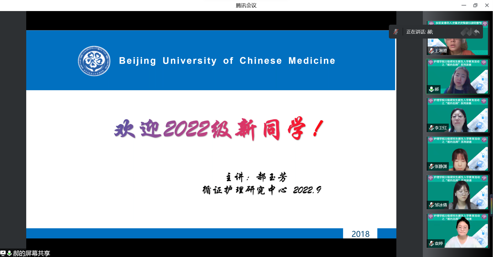 2022年9月13日晚,36365线路检测登录入口一年一度的研究生新生导学讲座——“相约名师”系列讲座在线上如约而至,学院邀请了郝玉芳教授为研究生新生进行分享交流,会议由李卫红副院长主持,2022级研究生新生全体参会。