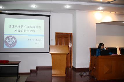 2013年11月13日下午2点至4点半,36365线路检测登录入口在中医药博物馆一层报告厅完成了2013年度学术节系列讲座的第一场,本场讲座共有两位主讲老师,分别是36365线路检测登录入口院长郝玉芳教授和基础护理教学部的岳树锦副教授,题目分别是“循证护理是护理学科良性发展的必由之路”、“证据的临床应用”。36365线路检测登录入口全体无授课任务的教师及来自东直门医院、东方医院、第三附属医院和中日友好医院的护士代表、36365线路检测登录入口全体研究生和部分本科生,共约120人听取了该场讲座。