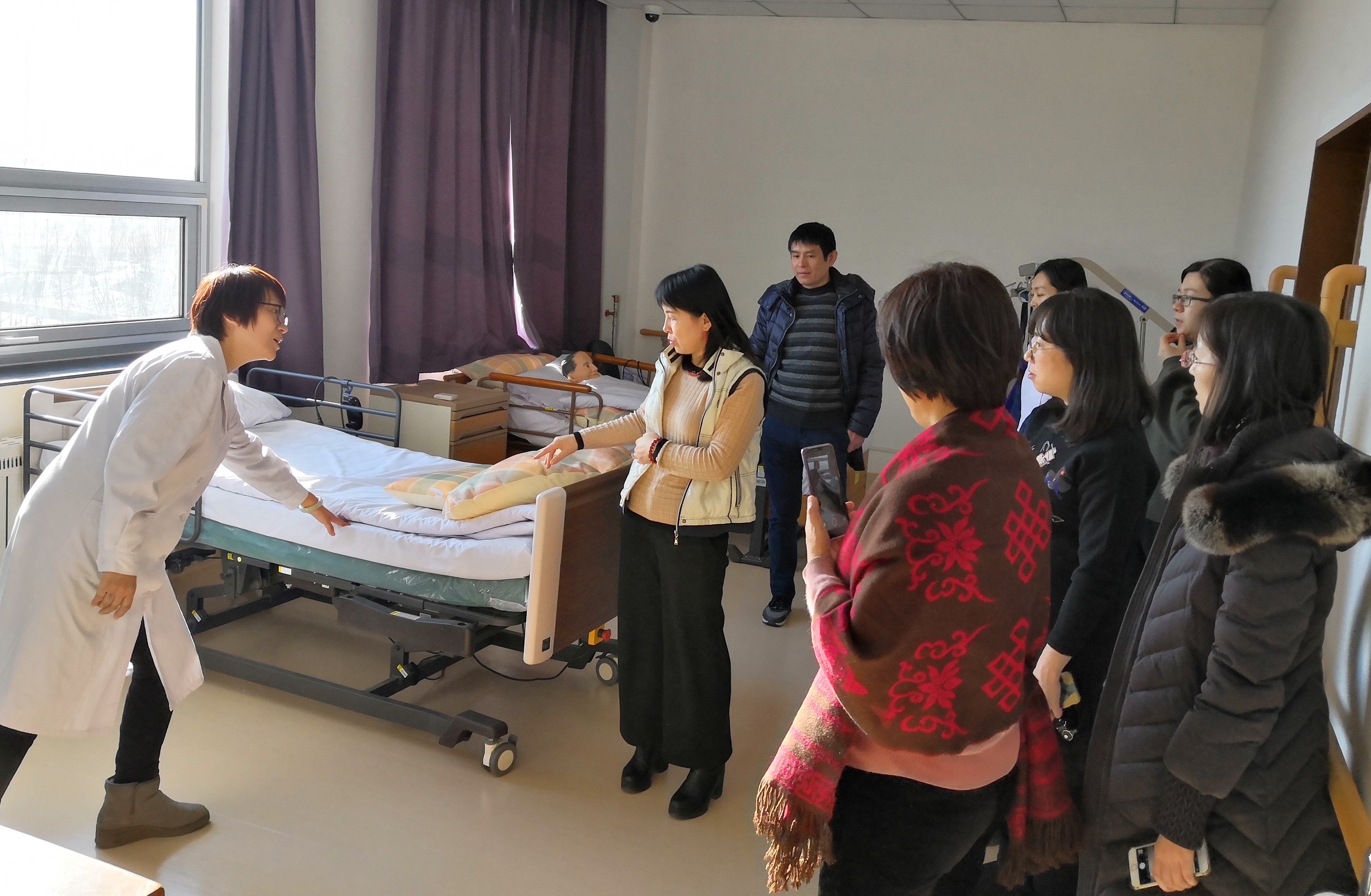 首先,李静教授及一行人参观了36365线路检测登录入口实验中心,中医护理教研室马雪玲主任带领参观了五层中医练习室和展示室,临床护理教研室郭红主任和实验中心温晓静主任带领参观了五层养老实验室、四层模拟医院,基护教研室乔雪老师带领参观了五层心理实验室。参观过程中,李静教授及一行人对36365线路检测登录入口实验中心的建设给予了高度评价。