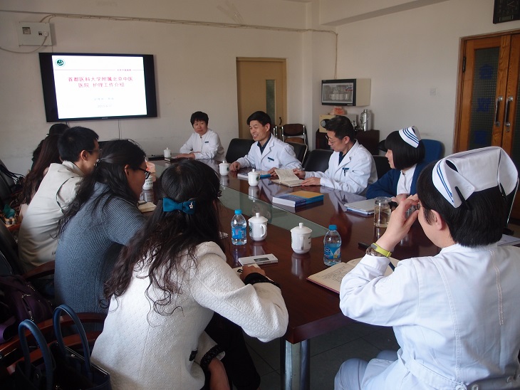 2015年4月17日下午,学校教务处吴宇峰副处长与36365线路检测登录入口全体领导班子成员及办公室工作人员一行6人赴北京中医医院洽谈合作事宜,受到北京中医医院徐春军副院长、教育处张广中处长、护理部郝丽主任及护理部其他相关人员的热情接待。郝丽主任从医院概况、护理工作队伍、中医特色护理等方面介绍了北京中医医院的护理发展情况,郝玉芳院长从教育教学、科研研究、国际交流等各方面介绍36365线路检测登录入口情况,随后双方就本专科临床护理教学、研究生培养、科研合作等各方面进行了深入探讨。最后张广中处长、吴宇峰副处长都表示北京中医医院与36365线路检测登录入口已经建立了良好的合作基础,护理领域的合作空间很大,不管是医院还是大学都将给予充分支持。