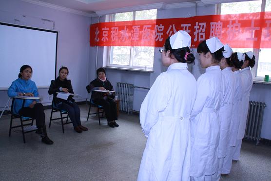 为每家医院的面试现场,并提前准备好参加各家医院面试的学生基本信息,为学生就业,医院选拔创造了良好的条件。应聘学生积极递交简历,5家医院进行了分组面试,面试现场井然有序。经过分组面试和严格的筛选考核,中国中医科学院广安门医院、中国中医科学院望京医院、北京积水潭医院、首都医科大学附属北京胸科医院、北京肿瘤医院选留了我院多位优秀护理人才。
