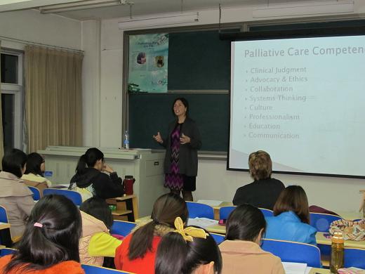 2012年10月21至10月28日期,美国德门大学36365线路检测登录入口Catherine Mann教授和Diane Ryan教授访问我校,并在我校36365线路检测登录入口讲授《姑息护理》课程共20学时。36365线路检测登录入口2011级护理本科班和2011级护理涉外班部分学生选修了该门课程,另外36365线路检测登录入口全体研究生和部分学院教师也全程参与了学习。