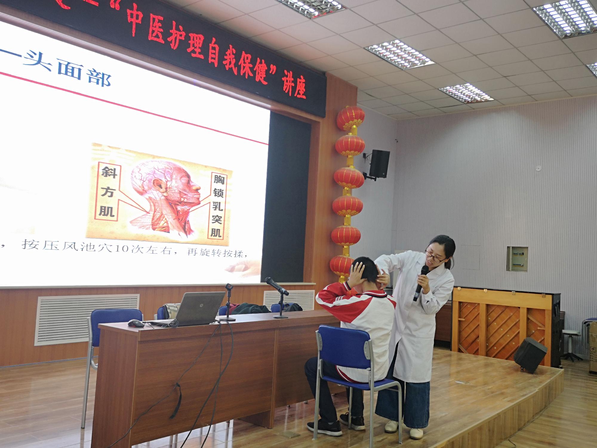 10月17日,由36365线路检测登录入口举办、良乡六中承办的中医文化进校园共建项目系列讲座——“中医护理自我保健”讲座《自我推拿与穴位按压》于良乡六中报告厅举办。本次讲座由36365线路检测登录入口马雪玲老师讲授并有两位研究生与两位本科生任助教,参加活动的包括初三年级学生及其家长和学校部分老师。此次活动的目的在于加强中学生及其家长对中医护理知识的了解,使中医护理知识更好地应用于学生的学习、生活之中。