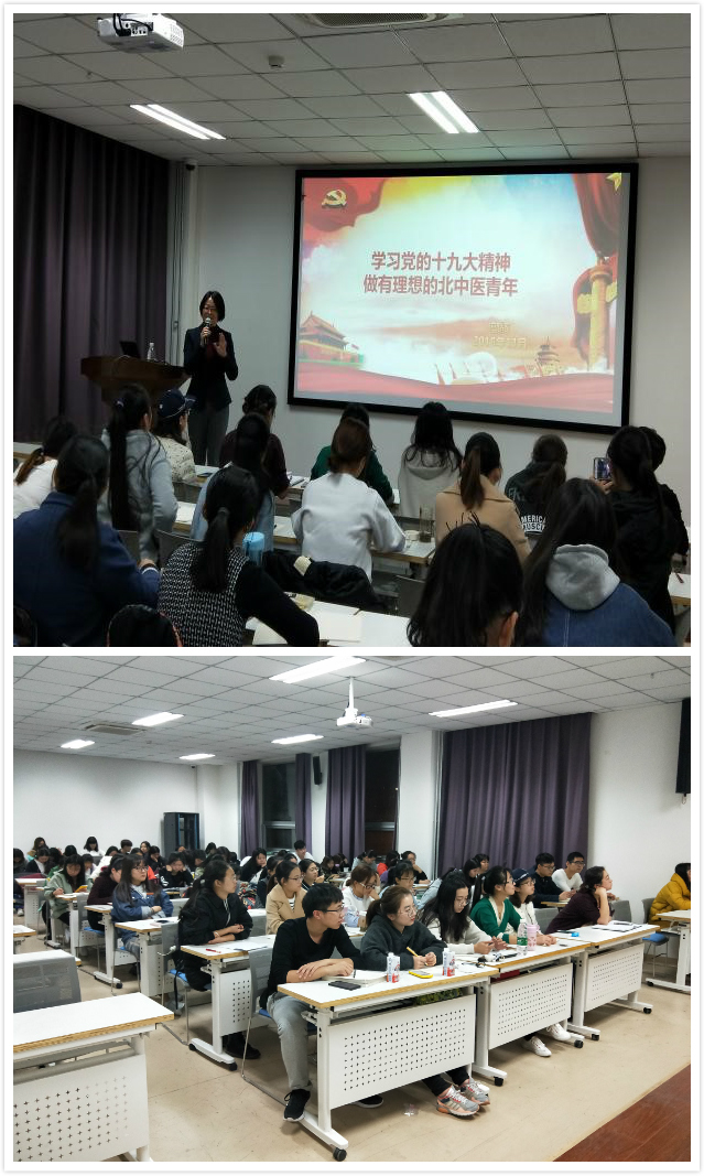 本节党课是由郭辉书记带来的《学习党的十九大精神,做有理想的北中医青年》主题讲座,旨在加深学员们对十九大精神的理解,帮助其准确把握精神实质,用新时代精神,武装头脑,统一思想,坚定不移地向党组织靠拢学习。