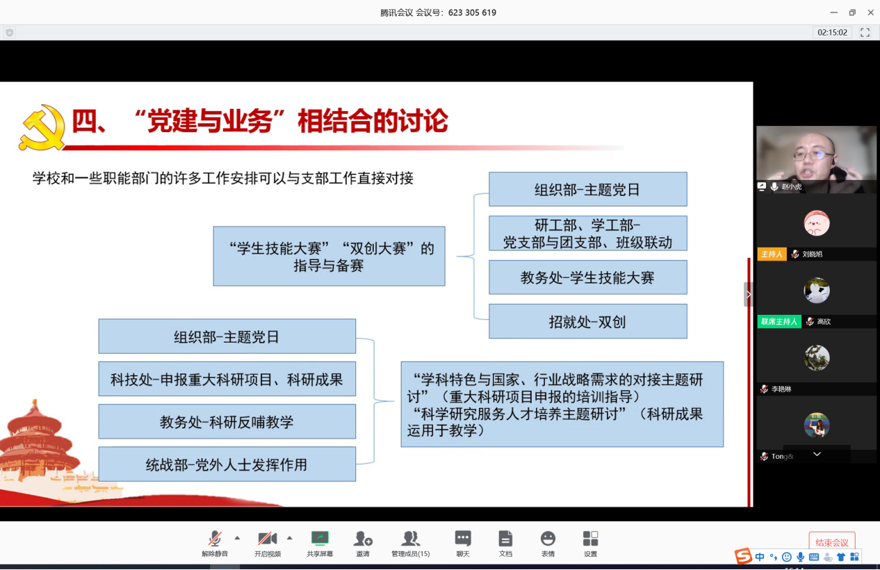 为进一步加强学院党务工作规范化标准化,发挥基层党支部战斗堡垒作用,3月25日,36365线路检测登录入口党总支以线上培训的形式邀请组织部赵小虎副部长作《党支部规范化建设专题培训》,36365线路检测登录入口党总支委员、各党支部书记和委员参与了培训。
