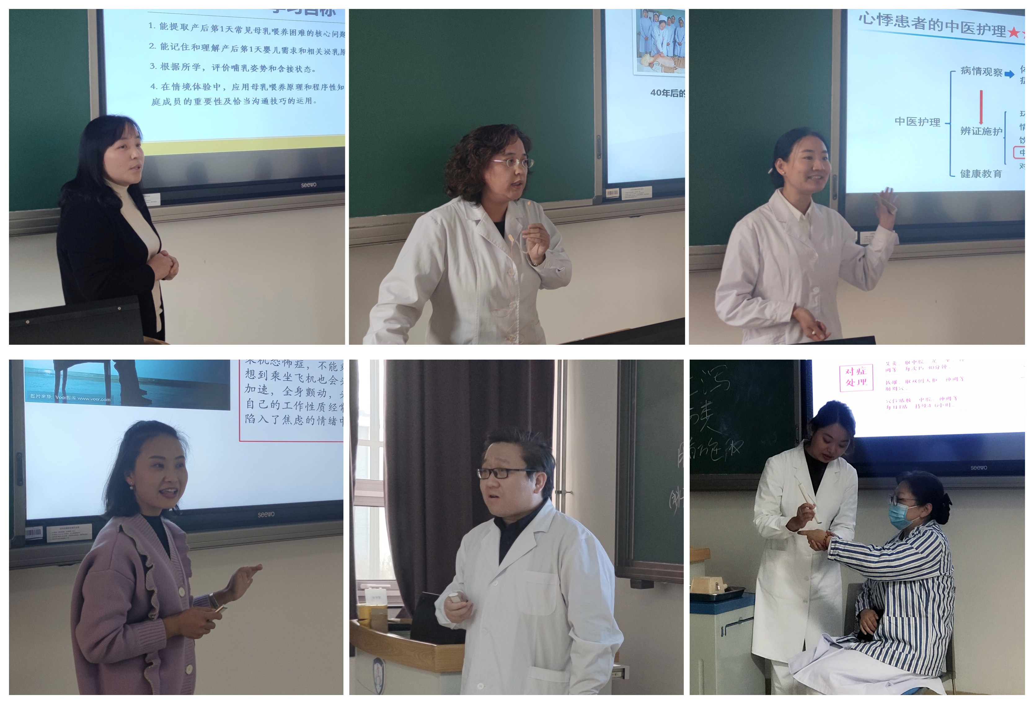 经各教研室内部选拔推荐,本次共有6名教师参赛,教师们满怀对护理教学事业的热爱,以饱满的精神、专业的态度投入比赛。教师们在教学内容设计上紧密联系护理临床案例,突出讲解重点、难点,运用案例教学等多元化的教学方法,以信息化资源与技术手段制作动静结合、图文并茂的课件,结合丰富生动的教学素材和课堂互动,充分展现了我院教师扎实的理论功底和授课技艺。教师们所体现的严谨的教学态度及人文关怀理念等也得到了现场评委的充分肯定,此外,评委们还就每位参赛教师的教学课件、教学内容、教学组织、教学语言与教态、教学互动等方面进行了深入点评,并给予了针对性的建议和精心指导。