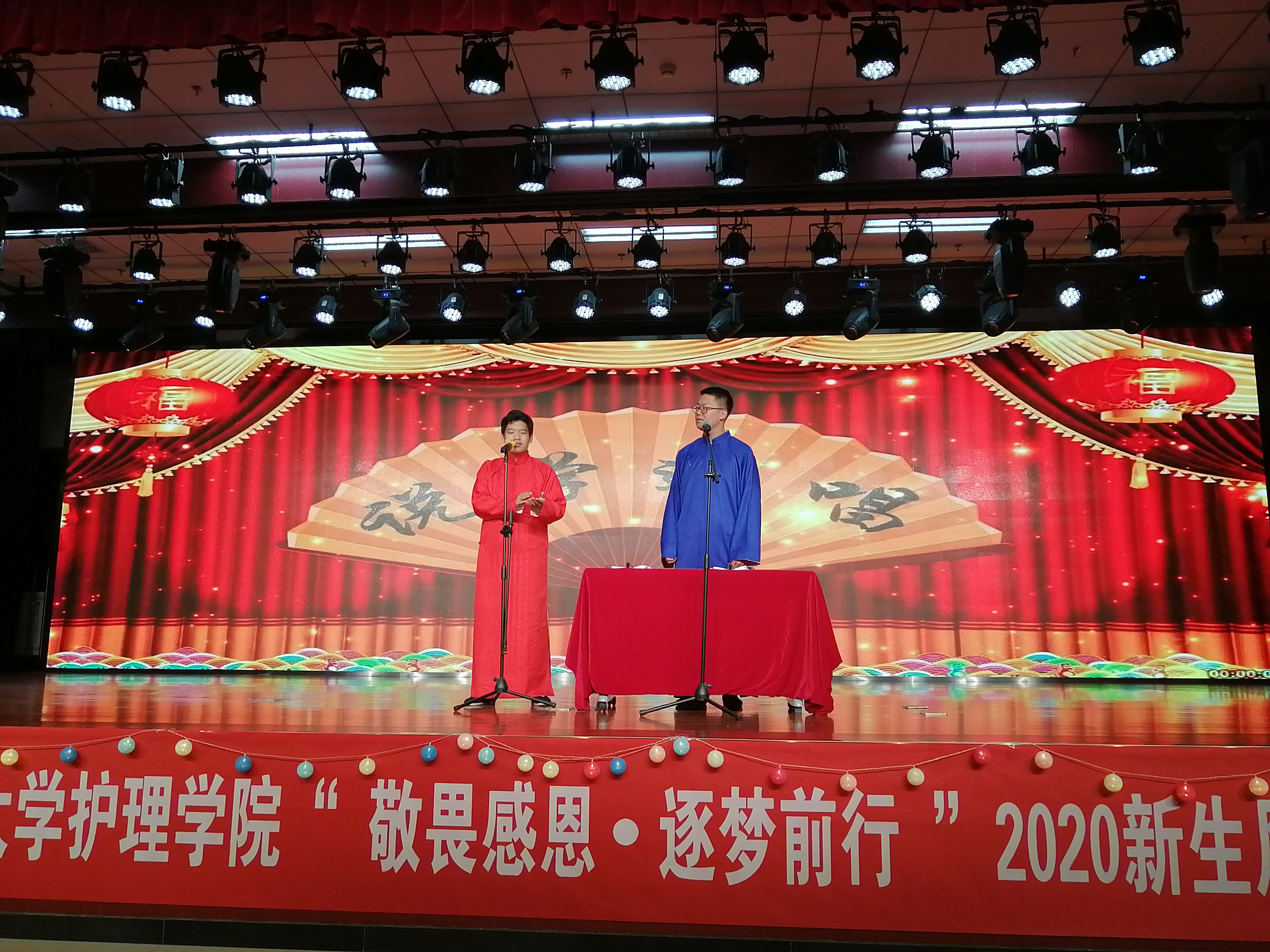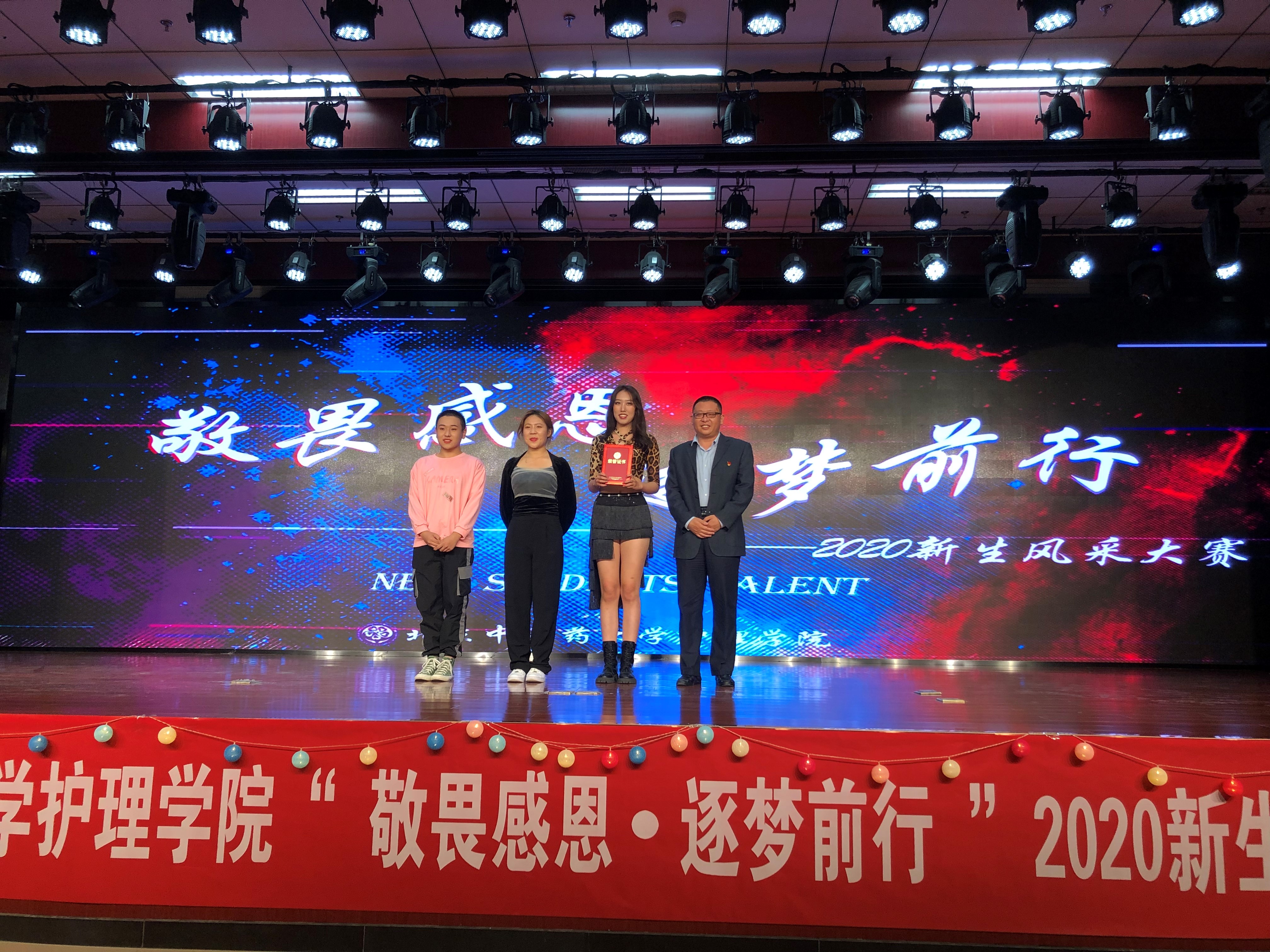 新生风采大赛是我院每年面对新生举办的经典活动,已连续举行4年,受到广大学生的一致好评。本次“敬畏感恩·逐梦前行”2020新生风采大赛从活动策划、节目遴选与彩排、舞台设计、最终演出由我院学生会同学独立策划实施,对于提升团学组织学生干部组织能力起到重要作用。本次活动营造了良好的校园文化氛围,为广大新生展示才艺、提升素质、更好地融入大学生活提供平台,展现出新时代护理学子的青春风采。