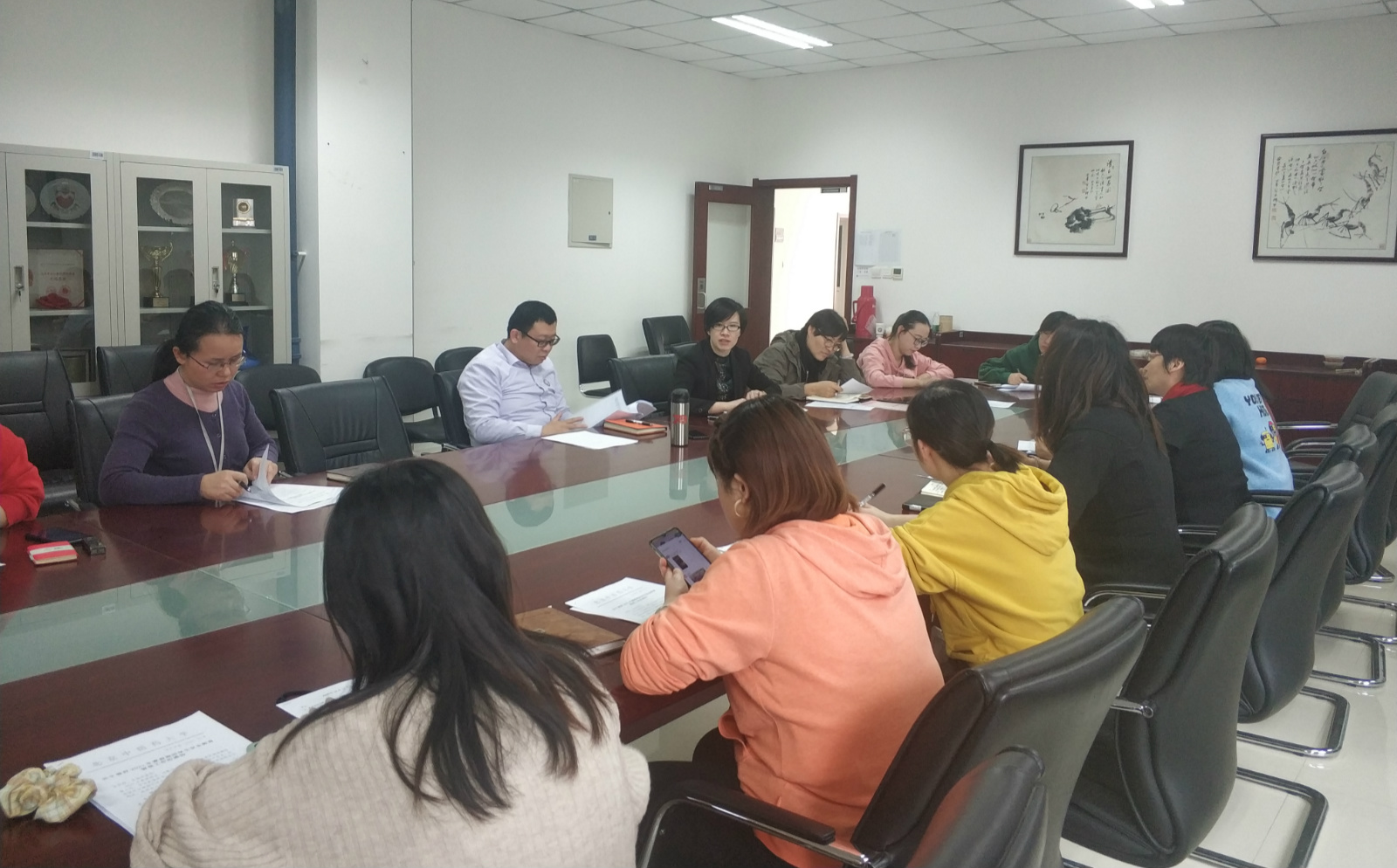 会议伊始,李小花副书记介绍了近五个学期我院学生在考试过程中出现的违纪情况,并对即将到来的期末考试周提出具体要求:一是每班必须在考前召开一次主题明确、剖析深刻、覆盖全体学生的班会,以具体实例从升学、就业及评奖评优等多方面详细讲解考试违纪对学生自身长远发展的影响,对班级评优、班主任和辅导员评优均为一票否决,同时影响学院整体绩效等严重影响。二是本次期末考试实行全程巡考,学院主考、班主任和领导班子三重巡考,全程跟踪学生考试情况。三是班主任、辅导员了解学业困难学生的复习情况,可利用学业辅导员、专任教师加强学业帮扶,帮助学生做好考前复习指导。四是常态化学生诚信教育,品行教育是树人之本,贯穿教育教学全环节全过程。随后,学办、教办相关负责老师也分别就考试座位安排、考场和考试成绩查询等考试相关事宜进行说明。
