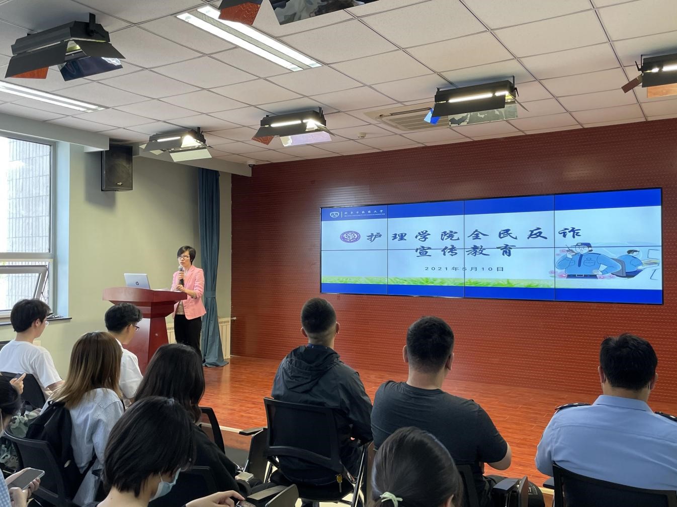 以电信网络诈骗为代表的新型网络违法犯罪形势严峻复杂,发案数仍在高位运行,骗术手法翻新极快、隐蔽性更强,严重侵犯人民群众财产权利和人身权利,已成为影响人民群众获得感、幸福感、安全感的突出问题。面对近期高校师生遭遇诈骗多起,屡禁不止,为进一步加强反诈知识宣传教育,提高师生安全意识和知识,在学校保卫处大力支持下,5月10日中午12:20在护理楼203会议室,36365线路检测登录入口举办全民反诈宣传教育活动。活动邀请拱辰派出所副队长、市局兼职教官、分局反诈宣传员路鹏警官主讲,保卫处张辉老师出席活动,学院各年级学生近400人通过线上线下参与。活动由36365线路检测登录入口党总支副书记李小花主持。