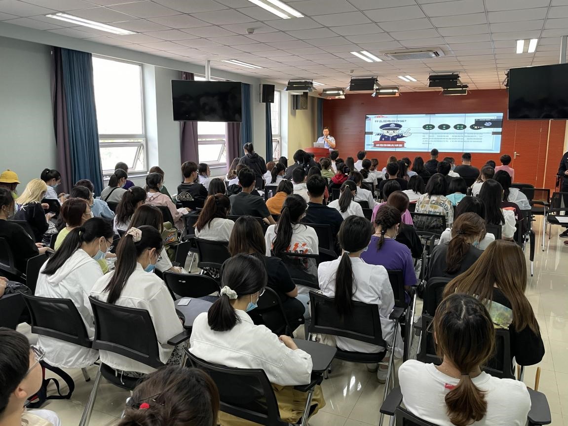 讲座开始,路警官以幽默风趣的讲座风格开场,同学们纷纷积极举手参与互动。首先,路警官向介绍了电信诈骗的识别公式、特点以及远程诈骗的危害和困惑,之后重点讲解电信网络诈骗犯罪图谱,从流程环节加强同学们对反诈的认识。最后,路警官讲授了预防诈骗的方法,耐心讲解被骗个案,详细全面的列举诈骗种类,并提出了“反诈骗灵魂8问”,告诫同学们要下载全民反诈app,树立防骗意识,加强反诈宣传!