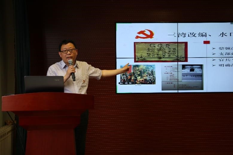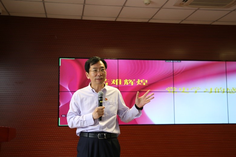随后,学院党总支王超书记以《苦难辉煌——党史学习的感悟》为题开展了党课学习。他带领师生从为什么要学习历史、历史选择了中国共产党、中国共产党的执政之基三个方面回顾了共产党建党的艰辛历史。通过一个个鲜活的事例,再现中国共产党建党、发展、自我革新到走上执政全国的艰难道路,一代又一代共产党人以坚定的共产主义信仰,担当起中华民族伟大复兴的重任,带领中国人民走上全面建设富强民主文明和谐美丽的社会主义现代化强国新征程。