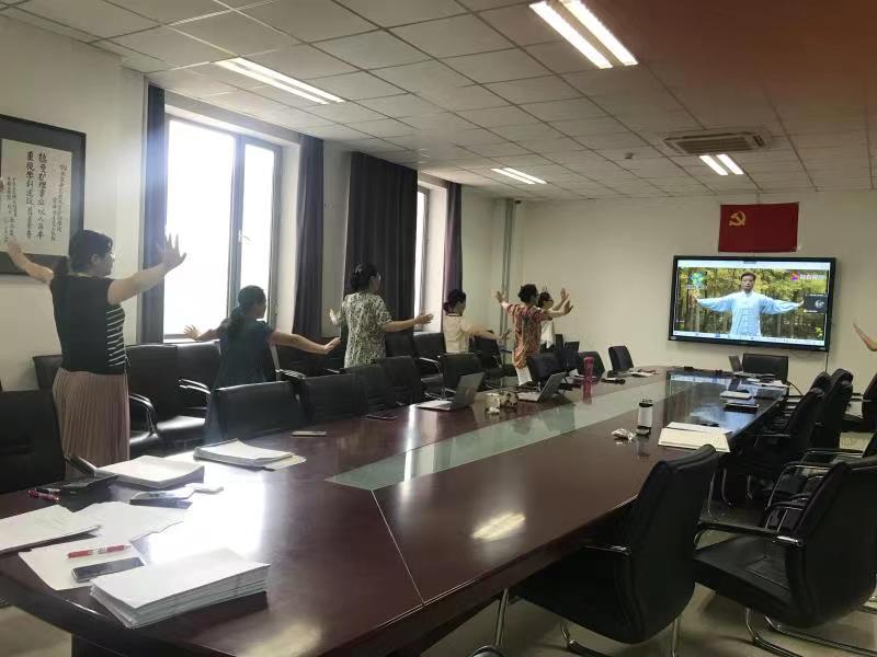 最后,为了舒缓老师们学期期末的紧张和疲劳状态,马雪玲老师给大家讲解了夏季养生之道,并带领大家做了一套八段锦。教师党员们顿感身心放松,决心以更饱满的热情投入到工作学习当中。