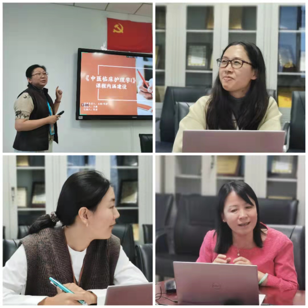 下午,中医护理教研室所属的《中医护理学基础I》《中医护理学基础II》《中医临床护理学I》《中医临床护理学II》课程进行了汇报,建设点分别聚焦创设传统文化的中医护理教学环境,探索课前经典诵读—医案解析—知识拓展的中医护理临床课程授课模式,探索中西医结合思维情景模拟实验教学方式。搭建院校联合教师共享平台,分享中医课程资料和体会,保证教学同质化和规范化;在具有影响力的线上平台发布中医古籍诵读,使学生课上课下均沉浸在中医文化中,感受中医文化的博大精深,增强文化自信;继续完善SPOC课程的翻转课堂设计,尝试非标答案考试改革,挖掘临床护理资源,培训中医典型病例SP病人,完善SP病人的云见习模式,补充中医课程的线下见习;建设集“文化传承-专业知识-实践技能”于一体具有鲜明特色的中医护理教学体系。