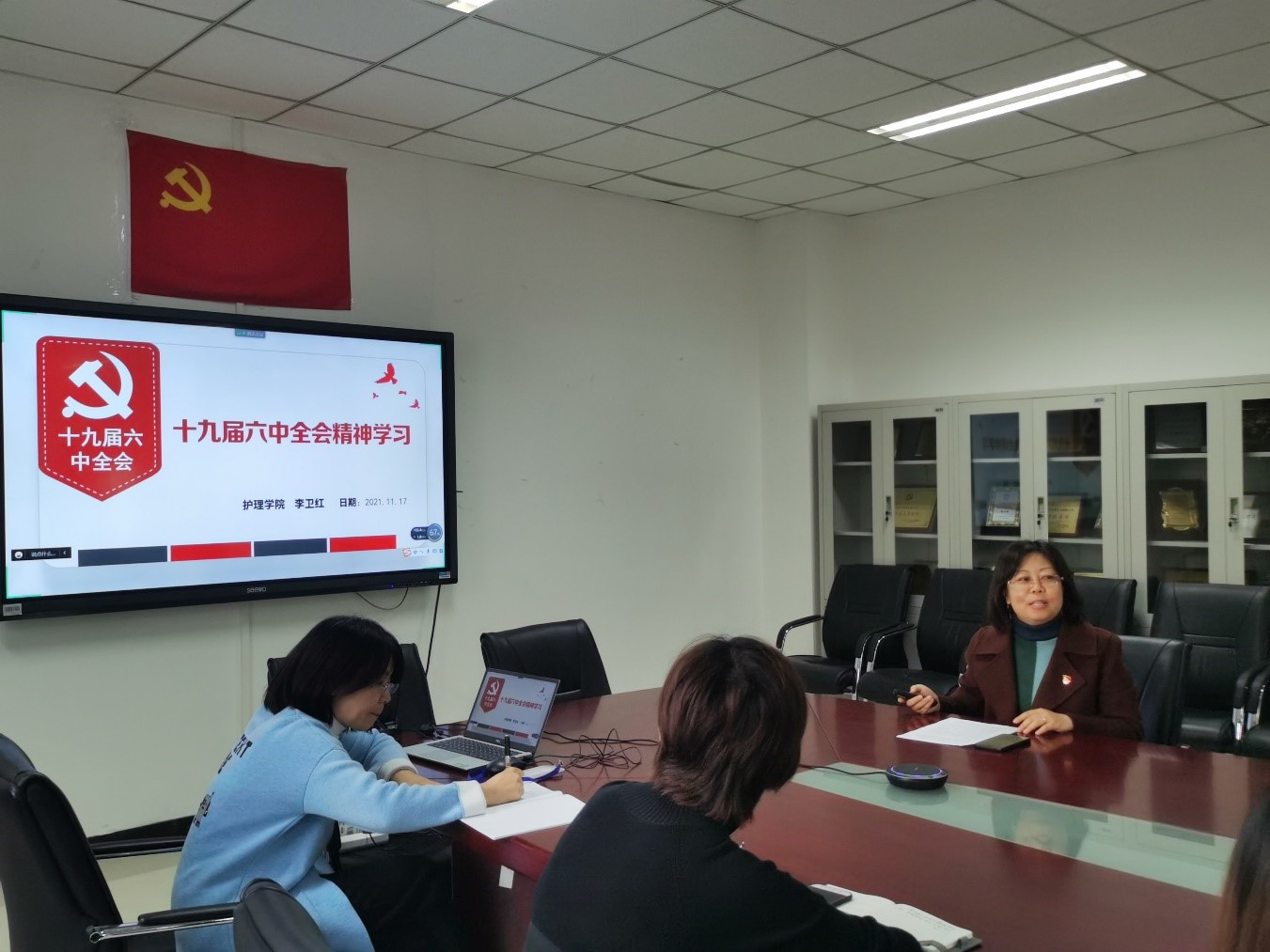 最后,党总支王超书记在总结时强调,全院上下要将学习贯彻党的十九届六中全会精神是当前和今后一个时期的重大政治任务,同时与党风廉政教育月活动结合起来,各党支部结合自身实际组织广大师生开展学习培训,迅速在学院内掀起学习热潮,切实增强全体党员的“四个意识”、做到“两个维护”。