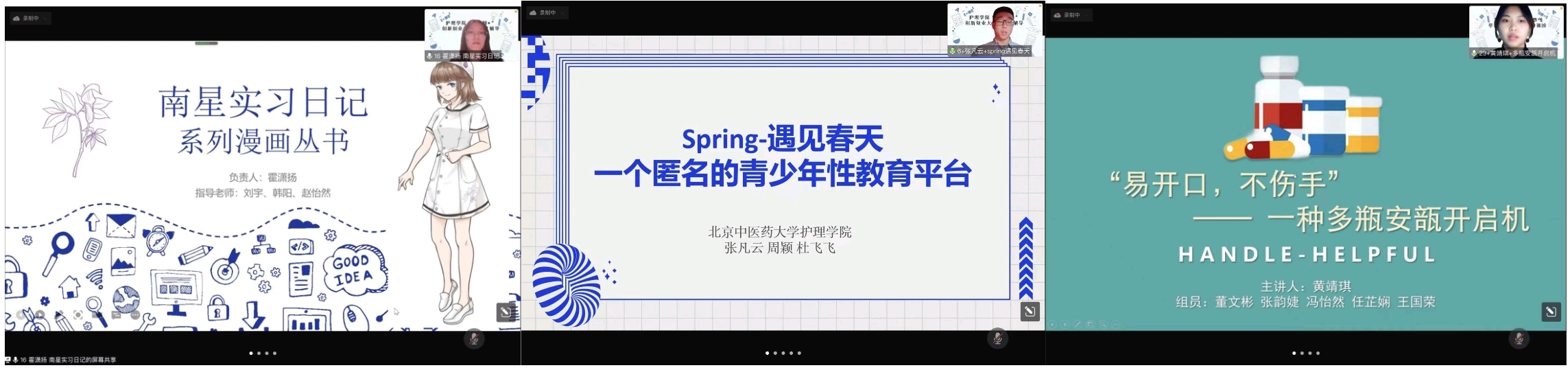 5月19日,高教主赛道研究生创意组与“青年红色筑梦之旅”赛道创意组、公益组共14组进行答辩。在主持人宣读比赛规则后,各项目组依照前期抽签顺序依次进行3分钟路演。在各组路演结束后,评审老师分别从产品与团队构成、大赛规则、护理专业内涵挖掘、成果转化等角度进行点评与提问。房老师高度师认同项目组结合自身学科特色、与中国传统中医药文化技术相结合来升级产品服务的想法,但是建议各项目初期,避免选择APP或者VR等需要大规模资金投入;徐博函老师则是建议同学们在赛道选择时,应多研读赛道分析与解读,有针对性地进行赛道选择。