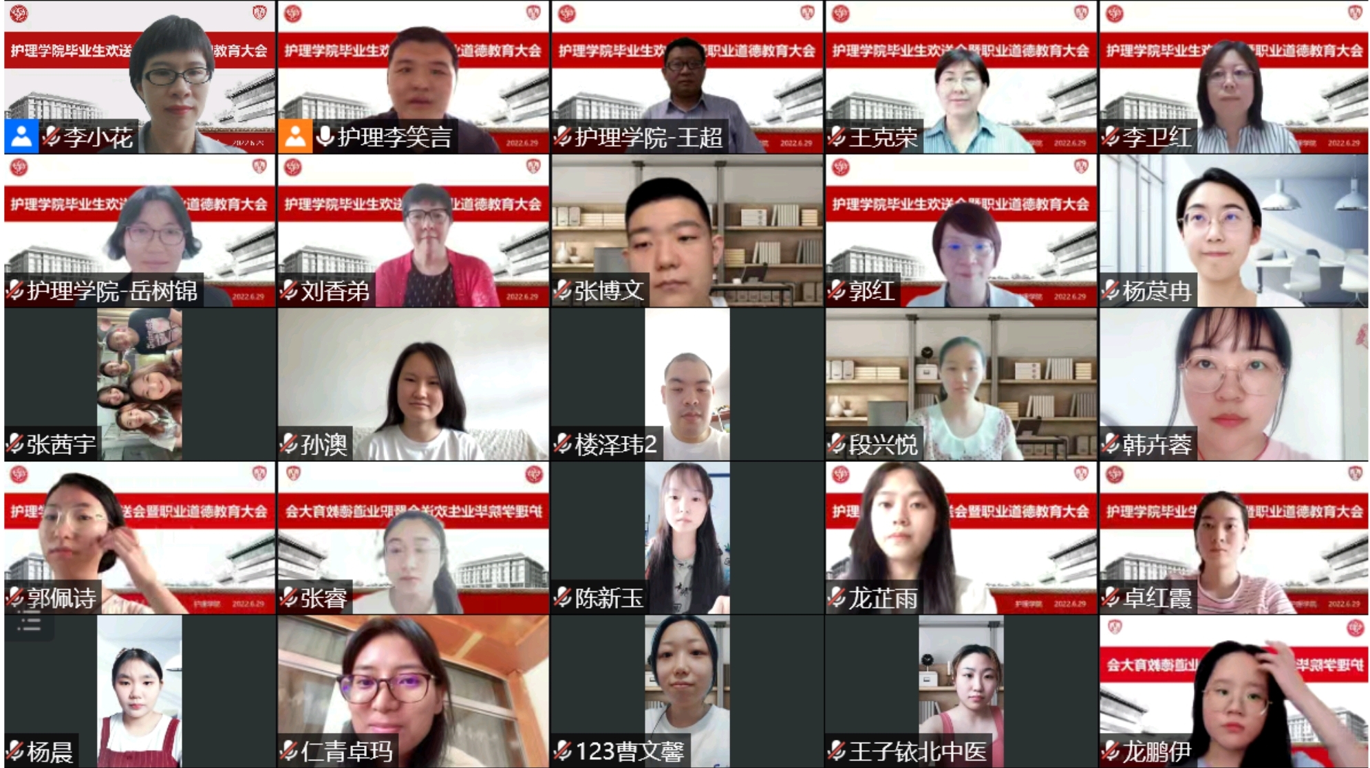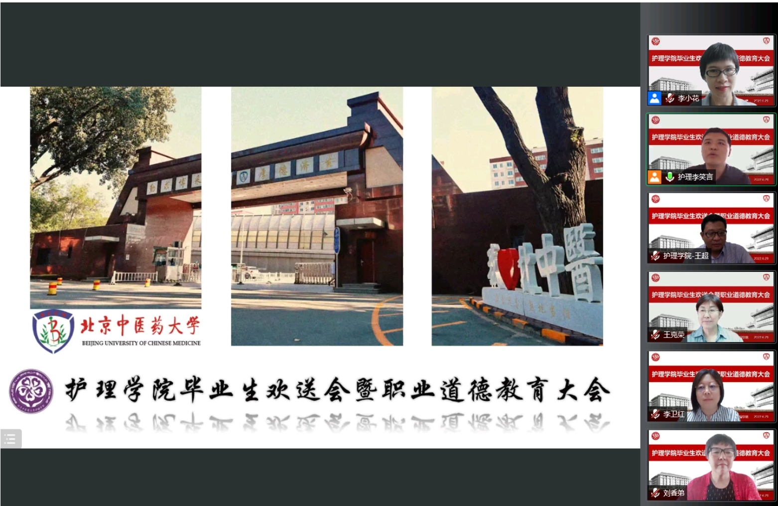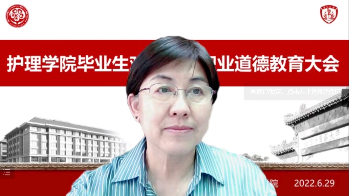 同时学院结合护理学专业特色,邀请第44届南丁格尔奖章获得者、北京地坛医院护士长王克荣老师,面向学院全体学生开展主题为《做有温度的护理人》职业道德教育讲座,引导学生秉承“勤求博采·厚德济生”的校训和“大医精诚”的优良文化传统,志存高远,脚踏实地,修医德、重品行、行仁术,立志做有情怀、有温度的医护工作者。学院全体领导班子、辅导员、部分教师代表以及2022届全体毕业生和班主任参加此次活动。活动由学院辅导员李笑言主持。