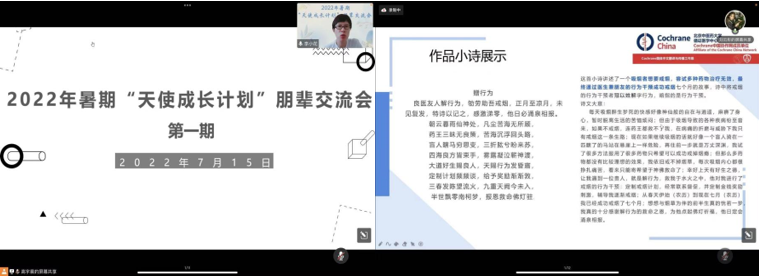 为促进36365线路检测登录入口学生全面发展,提升综合能力,满足学生成长成才、全面发展的实际需求,以朋辈互助形式,形成不同年级、不同学历层次间无缝交流的互助平台,推动我院学生成长成才工作进行。36365线路检测登录入口于2022年7月组织举办了2022年暑期“天使成长计划”朋辈交流会系列活动,活动以主题讲座形式分三期开展,主题分别为Cochrane翻译及翻译大赛、循证科普以及创新创业。本系列活动累计参与师生人数达800余人次。