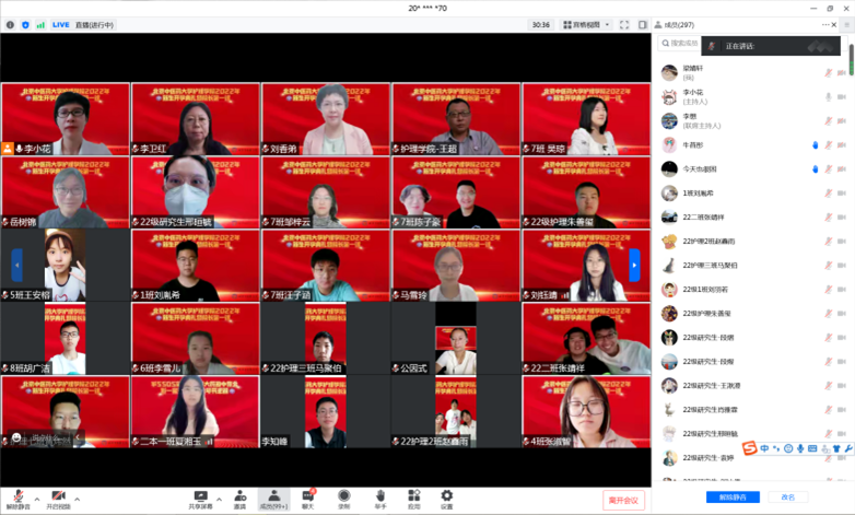 弗洛伦斯·南丁格尔,是近代护理和护士教育的创始人,现代护理的奠基人,被誉为“提灯女神”。为了表彰像南丁格尔一样为护理事业作出卓越贡献的优秀护理工作者,红十字国际委员会设立南丁格尔奖,这是国际护理界的最高荣誉奖。中国自1983年首次参加评选以来,已有83名优秀护理工作者获此殊荣。为更好的传承南丁格尔精神,开展护理学专业学生的职业教育,使其领悟职业内涵,养成职业品格,36365线路检测登录入口于9月6日在腾讯会议举办南丁格尔大讲堂成立仪式。学院党总支书记王超、院长刘香弟、副院长李卫红、副院长岳树锦及学院339名2022级本研新生线上参加。成立仪式由36365线路检测登录入口党总支副书记李小花主持。