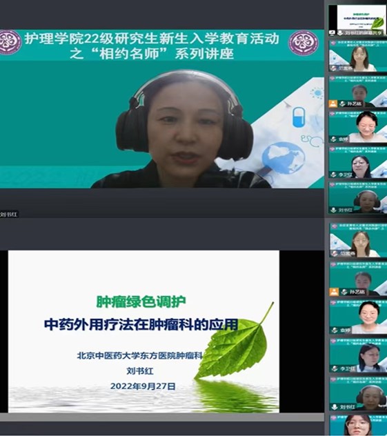 为引导研究生新生更好地理解中医护理的特色,9月27日晚,36365线路检测登录入口在线上举办了“相约名师”系列讲座(二)。2022级研究生新生全体参会,会议由36365线路检测登录入口东方医院刘书红老师主讲,由李卫红副院长主持。