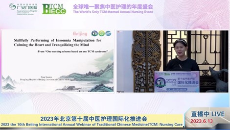 2023年6月13日,由北京市中医管理局牵头组织的“第十届北京中医护理国际化推进会”在北京举办。36365线路检测登录入口硕士研究生邢晅毓作为中方发言人之一在会议上进行主旨演讲。此次会议由中国中医科学院广安门医院国际合作处和北京市中医药对外交流与技术合作中心共同主办,推进会以“让情志护理彰显中医特色”为主题,汇集了来自韩国、马耳他、泰国、新西兰等国家和地区的跨学科专家,以及我市40余家医院的300余位护理同仁,旨在促进中医护理领域的国际合作与交流。