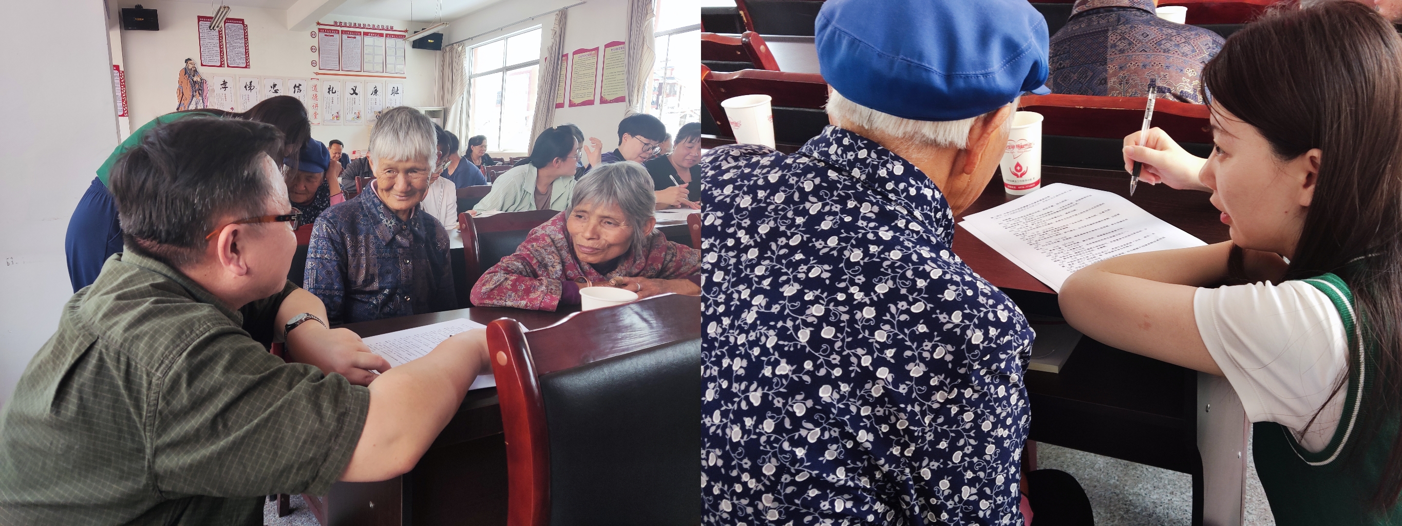 实践团在义诊送医送药的同时,还开展了中医养生康复讲座和中医药健康文化素养的调研。王惠峰老师在双柏县西城社区面向社区居民开展了以“健康的四大基石”为主题的专题讲座,围绕“合理膳食、适量运动、戒烟限酒、心理平衡”四个方面为当地群众讲解健康养生的专业知识,同时还为大家展示了日常外伤止血包扎的急救技术。王若佳老师及其团队通过线上线下结合的方式开展了中医药健康文化素养的调研,线上采取问卷星的方式,线下在西城社区、查姆广场等地,实践团成员指导当地居民填写调查问卷,深入了解双柏县当地居民的中医药健康文化知识普及情况和中医药健康文化水平,为后续开展相关研究和制定政策提供数据支撑和科学依据。